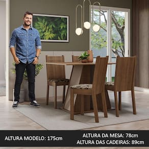 As cadeiras são produzidas em MDF e MDP, com assento estofado em tecido Floral Bege Marrom, que combina com os mais variados estilos de decoração.