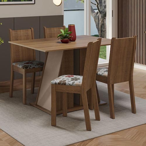 As cadeiras são produzidas em MDF e MDP, com assento estofado em tecido Floral Hibiscos, que combina com os mais variados estilos de decoração.