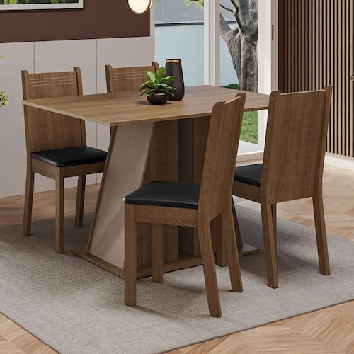As cadeiras são produzidas em MDF e MDP, com assento estofado em material sintético preto, que é fácil de limpar e combina com os mais variados estilos de decoração.