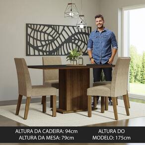 Conjunto Sala de Jantar Mesa Tampo de Madeira 4 Cadeiras Rustic/Preto/Imperial Keila Madesa - Marrom