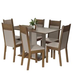As cadeiras são fabricadas com MDF e MDP de alta qualidade, com encosto pintado e assento estofado em um material Sintético Bege. Esse acabamento oferece um toque suave e macio, proporcionando ainda mais conforto durante as refeições.