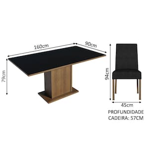 Conjunto Sala de Jantar Mesa Tampo de Madeira 6 Cadeiras Rustic/Preto/Oxford Renata Madesa - Preto