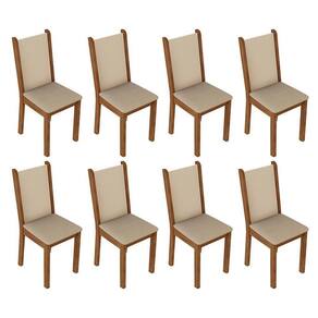 As cadeiras são fabricadas em MDF e MDP, com encosto em pintura e assento estofado em material Sintético Bege, que oferece um toque suave e macio.