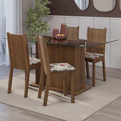 Cor: Marrom | Garantia: 3 meses contra defeitos de fabricação | Dimensões - Altura: 77 cm | Dimensões - Largura: 160 cm | Dimensões - Profundidade: 90 cm | Peso aproximado: 66 kg | Quantidade de Lugares: 4 lugares | Produto: Conjunto Sala de Jantar | Marca: Madesa | RBN: Casa/Móveis/Móveis para Sala de Jantar/Conjuntos para Sala de Jantar | Material: MDP/MDF | Material para Filtro: MDP/MDF | Estado de Origem: RS | Conteúdo da embalagem: 1 Conjunto de Jantar | Instruções/Cuidados: Utilize um pano limpo, levemente umedecido e seque em seguida a superfície. Não usar produtos químicos ou abrasivos para a limpeza. Recomendamos polir seu móvel com lustra-móveis duas a três vezes por ano. | Nome do Simples no Fornecedor: Conjunto Sala de Jantar Mesa Tampo de Vidro 4 Cadeiras Rustic/Floral Hibiscos Espanha Madesa | Produto precisa de Montagem?: Sim, sugerimos a contratação do nosso serviço de montagem (para os CEPs em que o serviço está disponível) ou de algum profissional experiente de sua preferência | Descrição do Tamanho: 77 cm x 160 cm x 90 cm | Comprimento Produto Com Embalagem (cm): 163 | Largura Produto Com Embalagem (cm): 94 | Altura do Produto com Embalagem (cm): 36,2 | Peso Produto Com Embalagem (Kg): 65,8 | Fabricante: Madesa | Contato do Fabricante: contato@madesa.com | Formato da Mesa: Retangular Cor: Rustic/Hibiscos