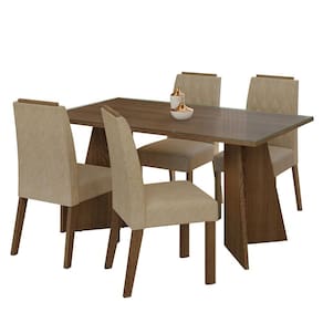 O acabamento da mesa é em tom amadeirado Rustic, garantindo um visual acolhedor e atemporal, perfeito para compor diferentes estilos de decoração. As cadeiras são revestidas em tecido Suede Imperial, transmitindo leveza e um visual elegante. É a sala de jantar ideal para quem valoriza beleza, praticidade e conforto em um só ambiente.