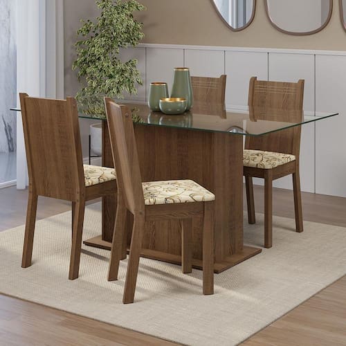 Cor: Marrom | Garantia: 3 meses contra defeitos de fabricação | Dimensões - Altura: 77 cm | Dimensões - Largura: 160 cm | Dimensões - Profundidade: 90 cm | Peso aproximado: 66 kg | Quantidade de Lugares: 4 lugares | Produto: Conjunto Sala de Jantar | Marca: Madesa | RBN: Casa/Móveis/Móveis para Sala de Jantar/Conjuntos para Sala de Jantar | Material: MDP/MDF | Material para Filtro: MDP/MDF | Estado de Origem: RS | Conteúdo da embalagem: 1 Conjunto de Jantar | Instruções/Cuidados: Utilize um pano limpo, levemente umedecido e seque em seguida a superfície. Não usar produtos químicos ou abrasivos para a limpeza. Recomendamos polir seu móvel com lustra-móveis duas a três vezes por ano. | Nome do Simples no Fornecedor: Conjunto Sala de Jantar Mesa Tampo de Vidro 4 Cadeiras Rustic/Lírio Bege Espanha Madesa | Produto precisa de Montagem?: Sim, sugerimos a contratação do nosso serviço de montagem (para os CEPs em que o serviço está disponível) ou de algum profissional experiente de sua preferência | Descrição do Tamanho: 77 cm x 160 cm x 90 cm | Comprimento Produto Com Embalagem (cm): 163 | Largura Produto Com Embalagem (cm): 94 | Altura do Produto com Embalagem (cm): 36,2 | Peso Produto Com Embalagem (Kg): 65,8 | Fabricante: Madesa | Contato do Fabricante: contato@madesa.com | Formato da Mesa: Retangular Cor: Rustic/Lírio Bege