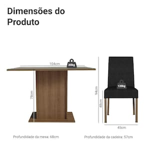 Com acabamento amadeirado Rustic e cadeiras estofadas em tecido Oxford, com espuma de alta densidade, ele combina conforto e um visual contemporâneo.