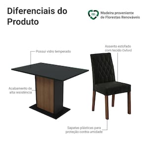 Com acabamento amadeirado Rustic e cadeiras estofadas em tecido Oxford, o conjunto oferece um visual sofisticado e atemporal, ideal para ambientes que valorizam estilo e praticidade.