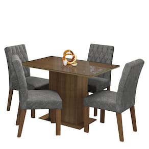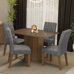 Com acabamento amadeirado Rustic e cadeiras estofadas em tecido Silver, traz sofisticação e equilíbrio para o ambiente. O tom neutro valoriza a decoração e se adapta com facilidade a diferentes estilos.