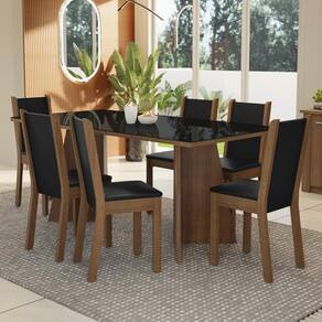 Nome do Simples no Fornecedor: Conjunto Sala de Jantar Mesa Tampo de Vidro 6 Cadeiras Rustic/Preto Viola Madesa