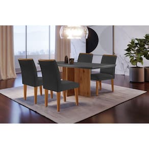 Sala de Jantar Irlanda/Dublin foi criada especialmente para quem possui ambientes pequenos, mas que não abre mão da sofisticação. Suas cadeiras são estofadas com espumas de alta qualidade, além de serem revestidas em tecido que oferece maior suavidade, maciez e beleza. Seu tampo com detalhe chanfrado e seu design moderno, tornam o ambiente perfeito para receber os amigos e atender à rotina do dia a dia. A Sala de Jantar Irlanda/Dublin é produzida em material 100% MDF e tampo em MDF chanfrado. Em sua confecção é utilizada a pintura UV com acabamento em semi brilho, que preservam a cor por mais tempo. As cadeiras são revestidas com tecidos e estofadas com espumas de alta qualidade. Medida da Mesa (A x L x P): 80 x 120 x 80 cm Peso da Mesa: 32 Mesa suporta até: 20 Acabamento da Cadeira/Banco: Pintura UV Acabamento da Mesa: Pintura UV Almofada do assento: Fixa Altura do Conjunto: 99.5 Ambiente Principal: Sala de Jantar Cadeira/Banco estofada: Encosto e Assento Estofados Cadeira/Banco suporta até: 100 Complexidade da Montagem: Média: pode ser montado por mais de uma pessoa e/ou necessite de maior conhecimento para montagem Cor: Grafite/Imbuia Cor da Base: Marrom Cor do Produto: Grafite/Imbuia Cor do Tampo: Cinza Cor Flex: Não Cor Secundária: Cinza De Canto (Canto Alemão): Não Design da Base: Cruz Enchimento do Assento: Espuma D-16 Enchimento do Encosto: Espuma D-14 Escala de Brilho: Semi-Fosco Espessura do Tampo: 15 Estrutura do Assento: Material: MDF 9 mm | Montado e colado: 120 mm Formato do Tampo: Retangular Informações Complementares: Material 100% MDF Itens Inclusos: 1 Mesa com 4 Cadeiras e Manual de Montagem Linha ou Coleção: Irlanda/Dublin Manual de Montagem e Instalação: https://cdn2.madeiramadeira.com.br/atributo/rufato/824686-manual-de-montagem-mesa-irlanda-cadeira-dublin.pdf Material da Base da Mesa: MDF Material da Estrutura da Cadeira: MDF/Madeira Maciça Material do Tampo: MDF Medida da Base (A x L x P): 78 x 68 x 46,5 cm Medida da Cadeira/Banco (A x L x P): 99,5 x 42 x 61 cm Medida do Tampo (L x C x E): 80 x 120 x 6 cm Mesa Extensível: Não Montagem Flex: Não Necessita Montagem: Sim Origem do Produto: Nacional Peso da Cadeira/Banco: 8.025 Possui Apoio para Braços: Não Possui Apoio Para os Pés: Não Possui Suporte Giratório: Não Quantidade de Lugares: 04 Recomendações de Uso, Manutenção e Limpeza: Limpar com flanela ou pano macio seco, não utilizar produtos abrasivos, desengordurantes, álcool ou solvente. Não expor o produto diretamente à luz solar e à umidade. Revestimento da Cadeira/Banco: Veludo Sistema de Montagem: Parafusos, Conectores e Sapatas. undefined: 693688 Vidro Temperado: Não