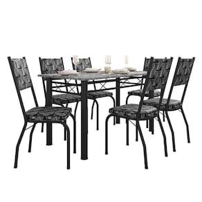 MEDIDAS MESA:: [ A ] = 77 cm [ L ] = 140 cm [ P ] = 75 cm | Medidas Cadeiras:: [ A ] = 90 cm [ L ] = 36 cm [ P ] = 53 cm | PESO CADEIRA:: 6,36 Kg cada | PESO SUPORTADO MESA:: 100 Kg | PESO SUPORTADO CADEIRA:: 110 Kg por pessoa | MODELO:: DIANA PRETO MOSAICO | MARCA:: Artefamol | COR DA MESA:: Estrutura: Preto / Tampo: Granito | COR DA CADEIRA:: Estrutura: Preto / Assento: Mosaico | ESTRUTURA:: Base e Cadeira de Aço | REVESTIMENTO INTERIOR CADEIRA:: Espuma D25 | MATERIAL DO TAMPO:: Granito | GARANTIA:: 3 meses pelo fabricante | AVISO:: A Esplanada Móveis se responsabiliza pela entrega dos produtos adquiridos até a porta de entrada ou portaria do endereço indicado, se a portaria do condomínio permitir, as entregas são efetuadas no piso térreo e é de responsabilidade do cliente | PESO MESA:: 65,74 Kg | TECIDO DA CADEIRA:: Material sintético | ACABAMENTO:: Fosco | ITENS INCLUSOS:: 1 Mesa e 6 cadeiras | ALTURA:: 90cm Cor: Preto Fosc