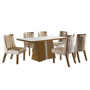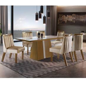 Suas refeições não serão mais as mesmas depois do Conjunto de Jantar Dallas com Cadeiras Lottus. É uma composição que moderniza o ambiente, e traz as melhores sensações para os mais simples momentos entre amigos e família. Sua estrutura em MDP/MDF promove qualidade e segurança. Já a combinação de cores das cadeiras com revestimento estofado deixam sua sala de jantar muito luxuosa. Ambiente Principal: Sala de Jantar Estilo: Moderna Características Mesa: Espessura do Vidro: 4 mm Espessura do Tampo: 50 mm Produzida em: MDF/MDP Peso da Mesa: 54 kg Mesa suporta até: 50 kg Pintura Base: Pintura UV Pintura Tampo: Pintura UV Vidro Temperado: Sim Vidro Serigrafado: Sim Formato do Tampo: Retangular Dimensões Altura: 80cm Largura: 80cm Profundidade : 160cm Características Cadeira: Tecido: Pena Espuma Encosto: D18 Espuma Assento: D20 Peso da Cadeira: 8,95 kg Cadeira suporta até: 120 kg Pintura dos pés: Pintura UV Dimensões Altura: 96cm Largura: 45cm Profundidade : 63cm Você Receberá: 01 Mesa com 6 Cadeiras desmontadas + manual de montagem + elementos para montagem Garantia: 03 Meses Necessita Montagem: Sim Complexidade da Montagem: Média - pode ser montado por mais de uma pessoa e/ou necessite de maior conhecimento para montagem Sistema de Montagem: Parafusos, Cavilhas, Cantoneiras, Sapatas, etc. Recomendações de Uso: Para manutenção e limpeza de seu móvel, use uma flanela seca ou umedecida. Não utilize produtos químicos que possam danificar o produto.