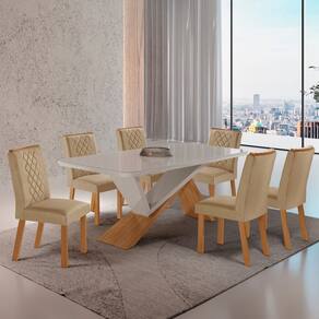 Complementando o conjunto, a Cadeira Kate é um modelo que combina conforto e elegância em um design refinado. Sua estrutura 100% em MDF assegura durabilidade, enquanto o assento e o encosto estofados prop Medida da Mesa (A x L x P): 80cm x 180cm x 90cm Peso da Mesa: 68,33 kg Mesa suporta até: 30 kg Acabamento da Cadeira/Banco: Pintura Texturizada Acabamento da Mesa: Pintura UV Acompanha Manual de Instalação: Sim Almofada do assento: Fixa Ambiente Principal: Sala de Jantar Cadeira/Banco estofada: Encosto e Assento Estofados Cadeira/Banco Estofada: Encosto e Assento Estofados Cadeira/Banco suporta até: 120 kg Cadeira/Banco Suporta Até: 120.0000 codigo_ean: 7900288345783 Complexidade da Montagem: Média: pode ser montado por mais de uma pessoa e/ou necessite de maior conhecimento para montagem Configuração do Conjunto: Mesa com Cadeiras Cor: Turim / Naturalle / Off White/ Serig. OFF Cor do Produto: Turim / Naturalle / Off White/ Serig. OFF Cor do Tampo: Off White Cor Flex: Não Cor Secundária: Marrom De Canto (Canto Alemão): Não Enchimento do Assento: Espuma D-16 Escala de Brilho: Semi-Brilho Espessura do Tampo: 40 mm Estrutura do Assento: MDF Estrutura do Encosto: MDF Formato do Tampo: Retangular Itens Inclusos: 1 Mesa, 6 Cadeiras e Kit Ferragens Linha ou Coleção: Texas - Kate Manual de Montagem e Instalação: https://product-hub-prd.madeiramadeira.com.br/695715040/documents/8633fb27-d378-477e-b5e4-683499ac56ca3422556584417725358565739.pdf Marca: Rufato Material da Base da Mesa: MDF Material da Estrutura da Cadeira: MDF Material do Tampo: MDF Material Principal: MDF Material Principal das Cadeiras/Bancos: MDF Medida da Cadeira/Banco (A x L x P): 99,5x61x42 Medida do Tampo (L x C x E): 180cm x 90cm x 4cm Mesa Dobrável: Não Mesa Extensível: Não Montagem Flex: Não Necessita Montagem: Sim Origem do Produto: Nacional Peso da Cadeira/Banco: 7,95 kg Possui Apoio para Braços: Não Possui Apoio Para os Pés: Não Possui Prateleiras: Não Possui Suporte Giratório: Não Possui Vidro: Sim Quantidade de Cadeiras: 6 Quantidade de Lugares: 06 Recomendações de Uso, Manutenção e Limpeza: Limpar com pano seco. Revestimento da Cadeira/Banco: Linho Sistema de Montagem: Parafusos Tipo de Assento: Fixo Tipo de Encosto: Fixo