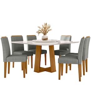 Com o mecanismo de tampo giratório a mesa Valência facilita o acesso aos pratos e utensílios, tornando suas refeições mais práticas e agradáveis. Já as cadeias Ana destaca-se pelo seu design moderno com um toque de sofisticação. Esse conjunto é a escolha ideal para tornar suas refeições em família ainda mais especial.