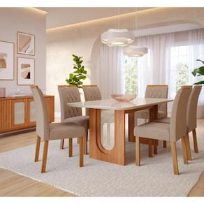 Características Cadeira: Acompanha 6 cadeiras Encosto com detalhes bordados Estrutura em MDF Espuma de alta densidade Moldura em madeira com acabamento em verniz Sistema de montagem Zemac Suporta até 100kg