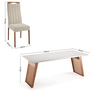O Conjunto Sala de Jantar Moscou com 4 Cadeiras Grecia Madetal combina elegância e resistência para compor ambientes aconchegantes e funcionais. As cadeiras são fabricadas com estrutura em madeira de eucalipto, acabamento em verniz, assento e encosto com espuma revestidos em tecido linho, suportando até 120kg cada. A mesa, também em madeira de eucalipto, possui pés robustos, acabamento envernizado e tampo com vidro fixado de 4mm, suportando até 30kg. Ideal para ambientes compactos, oferece conforto e estilo para sua sala de jantar.