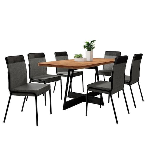 Altura das cadeiras: 90 cm | Estado de Origem: RS | Cor Via : Cinza | Família da Cor: Cinza | Cor: Preto | Peso: 75,30 | Código universal de produto: 2999 | Fabricante: Móveis Carraro | Marca: Móveis Carraro | Profundidade das cadeiras: 57 cm | Quantidade de cadeiras: 6 | Largura das cadeiras (cm): 46 cm | Altura da mesa: 76,5 cm | Comprimento da mesa: 160 cm | Material das cadeiras: Tecido/Courino/Aço | Modelo: Paris | Requer montagem: Sim | Formato da mesa: Retangular | Largura da mesa (cm): 90 cm | Material da mesa: MDP/Metal | Altura (cm): 90 cm | Largura do produto (cm): 160 cm | Profundidade (cm): 90 cm | Produto: Conjunto de Mesa e Cadeira | Nome Simples no Fornecedor: Conjunto Sala de Jantar Paris 6 Cadeiras Carraro Grafite/Preto/Nogal | Instruções/Cuidados: Nenhuma Informação | Conteúdo da Embalagem: 1 Conjunto Sala de Jantar Paris 6 Cadeiras Carraro Grafite/Preto/Nogal | Peso do Produto com Embalagem (kg): 75,3 kg | Altura do Produto com Embalagem (cm): 63,5 cm | Largura do Produto com Embalagem (cm): 93 cm | Comprimento do Produto com Embalagem (cm): 163 cm | Descrição do Tamanho: 63,5 cm x 93 cm x 163 cm | PrazoExp: 10