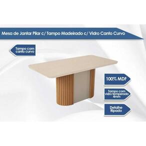 Mesa de Sala Jantar Pilar c/ Tampo Madeirado c/ Vidro Canto Curvo 180X90cm Flex Naturale/Naturale ou Off White - Rufato