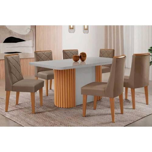 Sala de Jantar Completa Pilar c/ Tampo Madeirado c/ Vidro Canto Curvo 180x90cm e 6 Cadeiras Pietá Madeira Maciça Naturale/Off White - Capuccino/Suede Capuccino - Rufato Abaixo segue os produtos do KIT: Sala de Jantar Completa Pilar c/ Tampo Madeirado c/ Vidro Canto Curvo 180x90cm e 6 Cadeiras Pietá Madeira Maciça Naturale/Off White - Capuccino/Suede Capuccino - Rufato