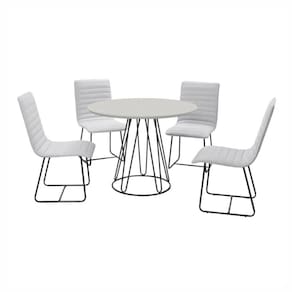 O Conjunto Sala de Jantar Rubi tem o tampo redondo na cor off white e a base em metal preto e 4 cadeiras também com a base em metal preto, resultam em um móvel atraente, sofisticado e de muito bom gosto. O produto certo para tornar os momentos ao lado da família e dos amigos memoráveis.