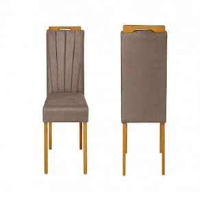 As cadeiras, revestidas em veludo e com espuma de alta densidade, oferecem conforto superior e acabamento refinado.