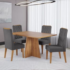 Conjunto Sala de Jantar Talento Mesa 120x80cm e 4 Cadeiras Iza Cobre/Cinza - Casa Giulia - Conjunto Sala de Jantar Mesa 120x80cm e 4 Cadeiras
