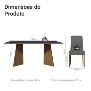 A estrutura da mesa é no acabamento amadeirado Rustic, o tampo em Preto e as cadeiras estofadas em tecido Suede Silver, criando um visual moderno. Ideal para quem busca unir beleza, funcionalidade e durabilidade em um único móvel.
