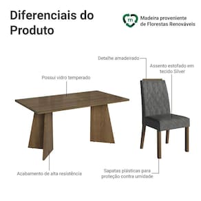 O acabamento em tom amadeirado Rustic da mesa, combinado com o tecido em Suede Silver das cadeiras, cria um ambiente com toque de modernidade , ideal para quem valoriza estilo e conforto.