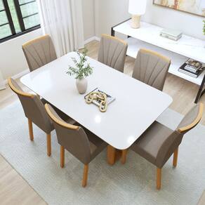 É ideal para refeições em família? Claro, ela acomoda 6 pessoas com conforto. Medida da Mesa (A x L x P): 78cmx170cmx90cm Peso da Mesa: 24,02 kg Mesa suporta até: 50 kg Acabamento da Cadeira/Banco: Pintura Acabamento da Mesa: Pintura UV Ambiente Principal: Sala de Jantar Cadeira/Banco estofada: Encosto e Assento Estofados Cadeira/Banco Estofada: Encosto e Assento Estofados Cadeira/Banco Suporta Até: 120.0000 Cadeira/Banco suporta até: 120 kg codigo_ean: 7900288228734 Complexidade da Montagem: Alta: deve ser montado por um montador especializado Cor: Amêndoa Clean /Off White/Animale Bege Cor do Produto: Amêndoa Clean /Off White/Animale Bege Cor Secundária: Marrom De Canto (Canto Alemão): Não Enchimento do Assento: Espuma D-20 Enchimento do Encosto: Espuma D-18 Escala de Brilho: Fosco Espessura do Tampo: 25 mm Estrutura do Assento: MDF/MDP/Espuma Formato do Tampo: Retangular Itens Inclusos: 1 Mesa, 6 Cadeiras, Kit Ferragem e Manual de Montagem. Linha ou Coleção: Jade/Bold Manual de Montagem e Instalação: https://product-hub-prd.madeiramadeira.com.br/659371508/documents/89d463c4-ec1d-4344-80dd-425df28627ff9f4dfd7cbf1793da1756917344.pdf Marca: Móveis Lopas Material da Base da Mesa: MDF/MDP Material da Estrutura da Cadeira: MDF/MDP Material do Tampo: MDF Material Principal: MDF/MDP Medida da Cadeira/Banco (A x L x P): 97cmx42cmx56cm Medida do Tampo (L x C x E): 170cmx80cmx25mm Mesa Extensível: Não Necessita Montagem: Sim Origem do Produto: Nacional Peso da Cadeira/Banco: 8,65 kg Possui Apoio Para os Pés: Não Possui Vidro: Não Quantidade de Cadeiras: 6 Quantidade de Lugares: 06 Recomendações de Uso, Manutenção e Limpeza: Limpar com pano macio e levemente umedecido. Não utilizar solventes a base e de inflamáveis. Não utilizar produtos abrasivos. Revestimento da Cadeira/Banco: Suede Sistema de Montagem: Parafusos. Tipo de Assento: Fixo Tipo de Encosto: Fixo