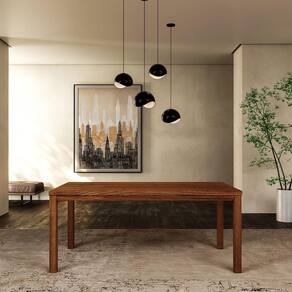 Conjunto Sala Jantar Nature: Balcão Buffet, Mesa, Banco e Cadeiras Madeira Pinus Rústico Escuro - Transparente