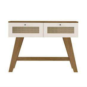 Conjunto Sala Painel p/ TV até 72”, Aparador 2 Gavetas, Mesa Centro e Apoio Trama Cinamomo/Off White - Artely