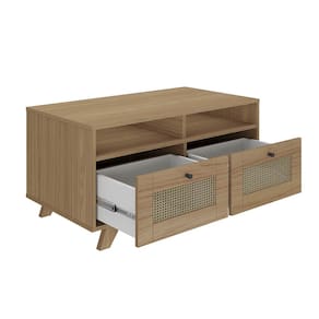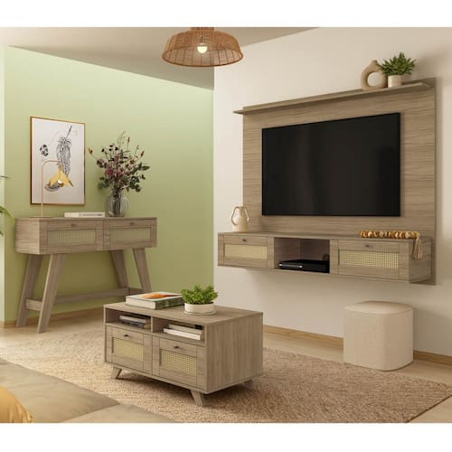MDF/MDPConjunto Sala Painel p/ TV até 72”, Aparador 2 Gavetas, Mesa de Centro Trama Carvalho - Artely