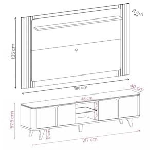 Este conjunto de Rack e Painel é o complemento perfeito para sua sala. Com prateleiras espaçosas e um design elegante, este móvel é perfeito para organizar seus objetos e aparelhos eletrônicos. Adicione um toque de sofisticação à sua sala com este conjunto de rack e painel Roma.