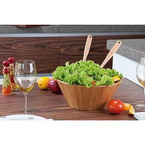 O Conjunto Saladeira Bamboo vai dar o toque que faltava ao seu jantar. Composto por garfo e colher, é ideal para servir saladas como prato principal ou com acompanhamentos. Ideal para reuniões ou até mesmo festas. É a facilidade que você precisava na cozinha e para seu dia a dia. Saladeira: Ø30cm x 13cm Garfo e colher: 28,5cm x 8cm x 1,5cm