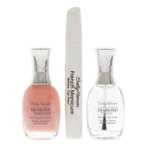 Este conjunto contém todas as ferramentas necessárias para obter um belo acabamento com qualidade de salão - mas no conforto de casa. Este conjunto apresenta a tonalidade Ballet Bare, mas também está disponível em muitas outras cores clássicas e brilhantes. Unhas com Até 10 dias de proteção contra quebra e rachaduras Esta fórmula avançada agora tem platina para força, brilho e desgaste Contém: Guias de pontas de unhas 1 esmalte 1 Base Top coat 1 Caneta Branca dos EUA Ean: 074170378351