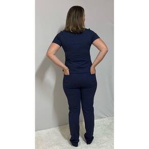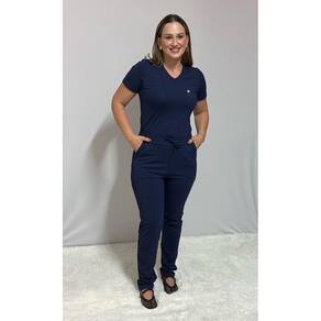 Conjunto Scrub Pijama Cirúrgico Essência Azul Marinho Toque Geladinho - P - Azul Marinho