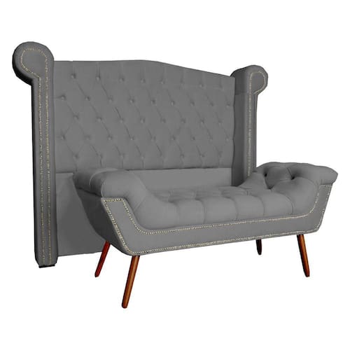 Conjunto Sienna Cabeceira e Recamier Solteiro 90 Cm Suede Cinza - LM DECOR
