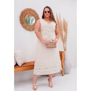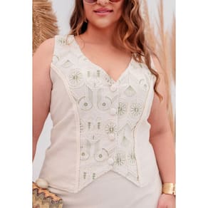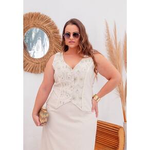 O Conjunto em Linho Bordado Plus Size é a escolha perfeita para quem busca elegância, conforto e sofisticação em uma única peça. Com design atemporal e delicado, ele une estilo e versatilidade para ocasiões especiais, eventos sociais e também para momentos de adoração e culto, sendo uma excelente opção no âmbito evangélico. O colete traz um caimento impecável, com decote em V, fechamento frontal por botões funcionais forrados e bordados exclusivos na parte frontal, que valorizam a silhueta feminina. Sua modelagem é levemente acinturada, proporcionando elegância e harmonia ao visual. A parte interna conta com forro 100% poliéster, garantindo conforto e segurança. A saia midi acompanha o conjunto e possui cós com elástico nas costas para maior conforto, zíper lateral invisível e barra bordada com detalhes sofisticados, que completam o look com delicadeza. Além disso, o forro interno oferece a cobertura ideal, mantendo discrição e bem-estar em qualquer ocasião. Confeccionado em 70% viscose e 30% linho, o conjunto possui toque leve, caimento fluido e frescor, ideal para estações mais quentes. É uma peça versátil que transita entre looks formais, sociais e evangélicos, sempre garantindo estilo e sofisticação. Especificações do Produto