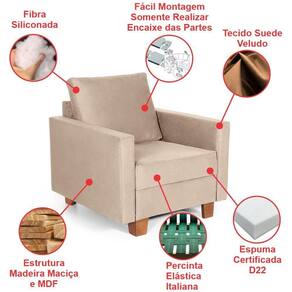 Produtos Entregues: 1 Sofá + 1 Poltrona (Os objetos que ambientam as fotos não acompanham o produto);