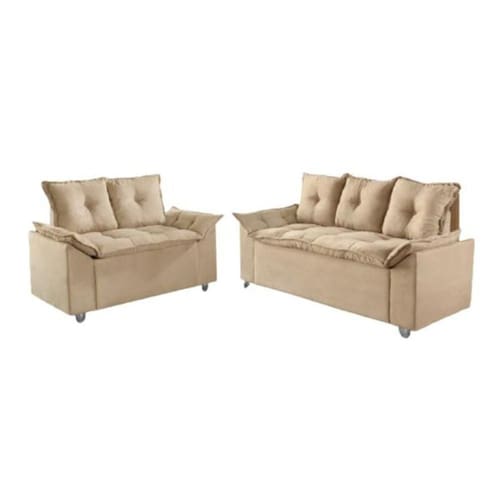 Conjunto Sofá 2 E 3 Lugares Viena Veludo Bege