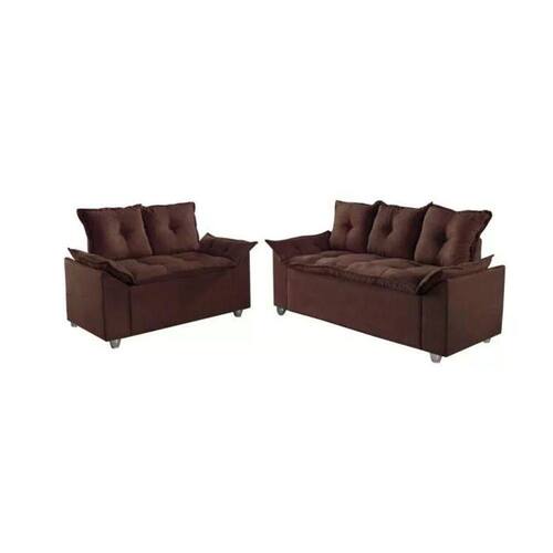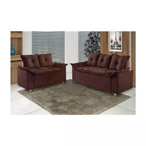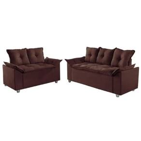 Conjunto Sofá 2 e 3 Lugares Viena Veludo Marrom