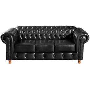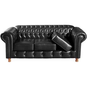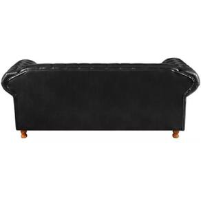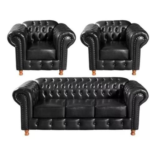 Conjunto Sofá 3 Lugares e 2 Poltrona Chesterfield Luís XV Vintage Retrô Capitonê Couro Preto