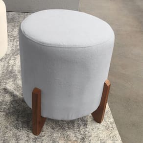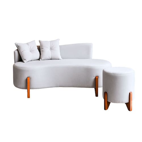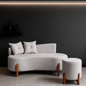 Conjunto Sofá Curvo Orgânico + 01 Puff Luna Boucle Cinza Claro - Montanaris Decor