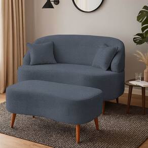 Sofá e Puff Orgânicos em Tecido Bouclé | Design Curvo, Estilo Moderno e Conforto Premium