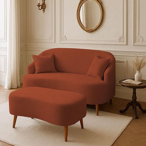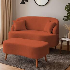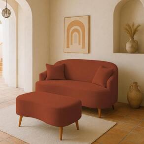 Conjunto Sofá Curvo Orgânico Malu + 01 Puff Suede TerraCota - Terracota | Laranja