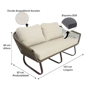 Dimensoes Namoradeira Milao: Altura total: 69 cm Altura do assento ao chao: 44 cm Largura total: 143 cm Largura do assento: 117 cm Profundidade: 82 cm Suporta ate 300 kg