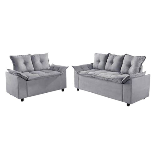 Conjunto Sofá Liones com 2 e 3 Lugares Almofadas Soltas e Tecido Suede