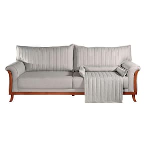 Cama Pet base bordada em matelassê com espuma D23, enchimento das abas laterais de fibra de silicone e acabamento em ziper.Material da estrutura: Madeira Eucalipto 25MM (Reflorestamento)Material do Revestimento: Linho 100% PoliesterTipo de Encosto: Almofadas Soltas Tipo de Assento: FixoRodapé: Madeira maciçaTipo de pé: 5 pés fixosMaterial dos pés: Madeira maciçaCapacidade: 4 LugaresPeso Máximo Suportado (Kg): 100