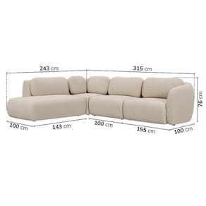 Itens Inclusos: 1 Modulo Direito, 1 Modulo Central, 1 Modulo Sumiê, 1 Modulo de Canto e Manual de Montagem Largura do Conjunto: 315 cm Largura do Sofá Maior: 155 Largura do Sofá Menor: 100 Linha ou Coleção: Orla Marca: CabeCasa MadeiraMadeira Material dos Pés: Madeira Maciça Necessita Montagem: Não Origem do Produto: Nacional Pet Friendly: Não Possui Mola: Sim Possui Percintas Elásticas: Sim Possui Pés: 4 Possui Rodízio: Não Recomendações de Uso, Manutenção e Limpeza: Usar detergente neutro e secar a sombra Revestimento do Braço: Bouclé Suporta Até (kg): 120 Tecido Predominante: Bouclé Tipo de Encosto: Fixo Tipo de Mola: Molas Ensacadas (Molas ensacadas) Tipo de Sofá: Conjunto de Sofás